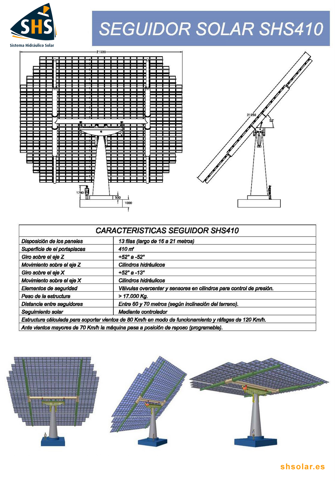 El modelo SHS.410 es el seguidor solar con mayor superficie portaplacas del mundo.